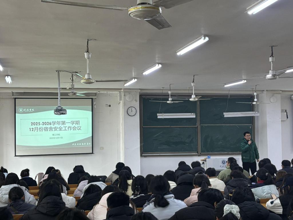 为进一步筑牢安全防线,护航宿舍生活,12月17日中午,理工学院在人文楼108开展了2025-2026学年第一学期12月份宿舍安全工作会议。2025级普本和2025级专升本所有新生宿舍长参会并认真学习,会议由宿舍管理负责人杨康强老师主持。