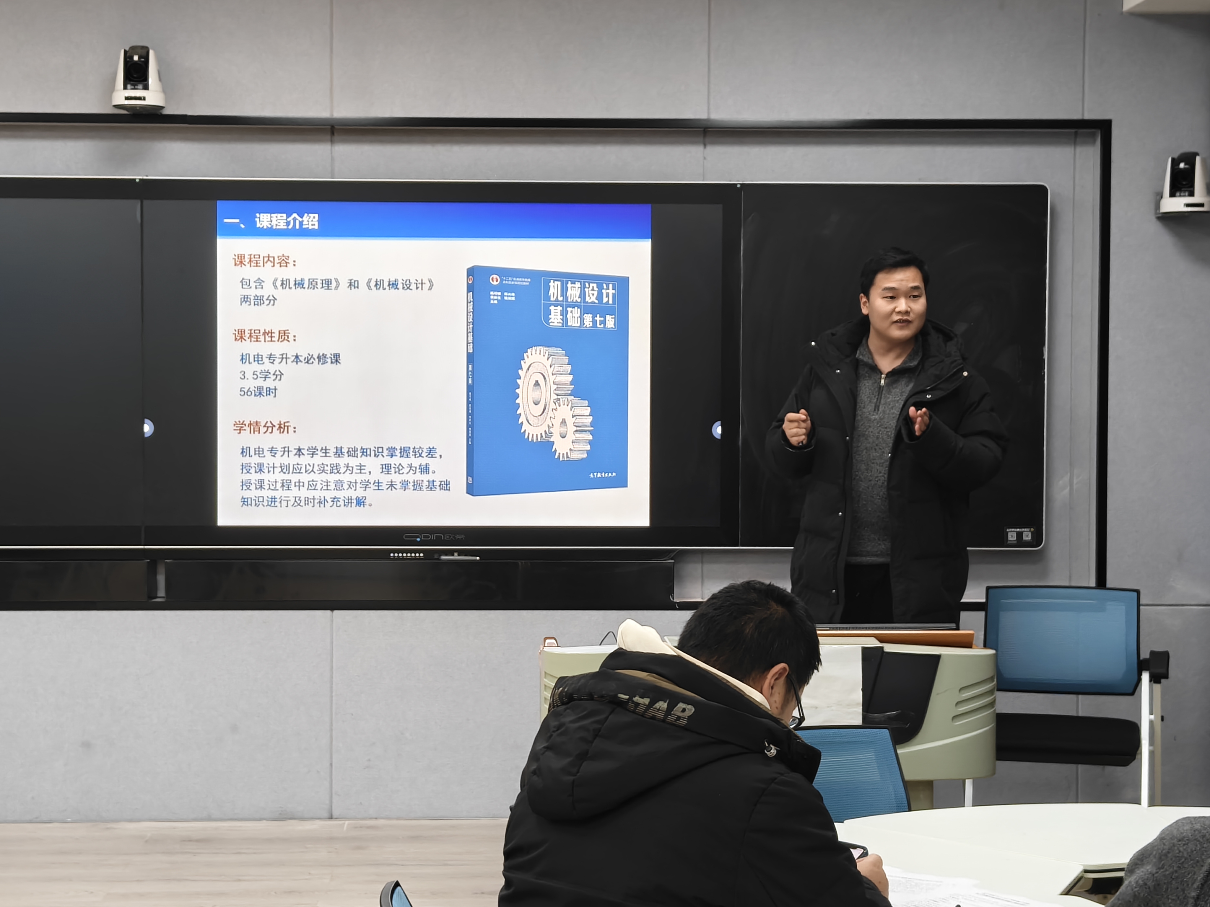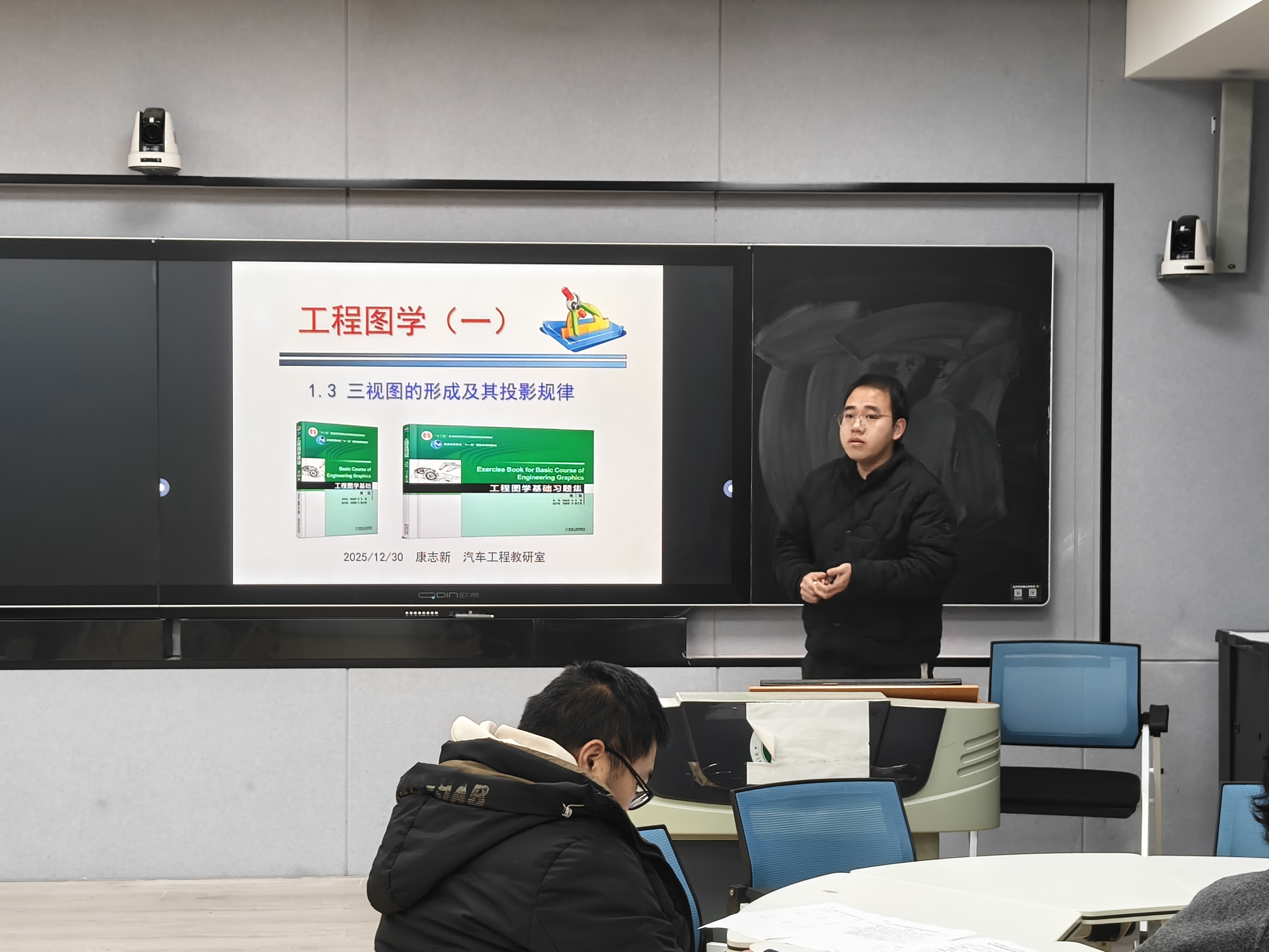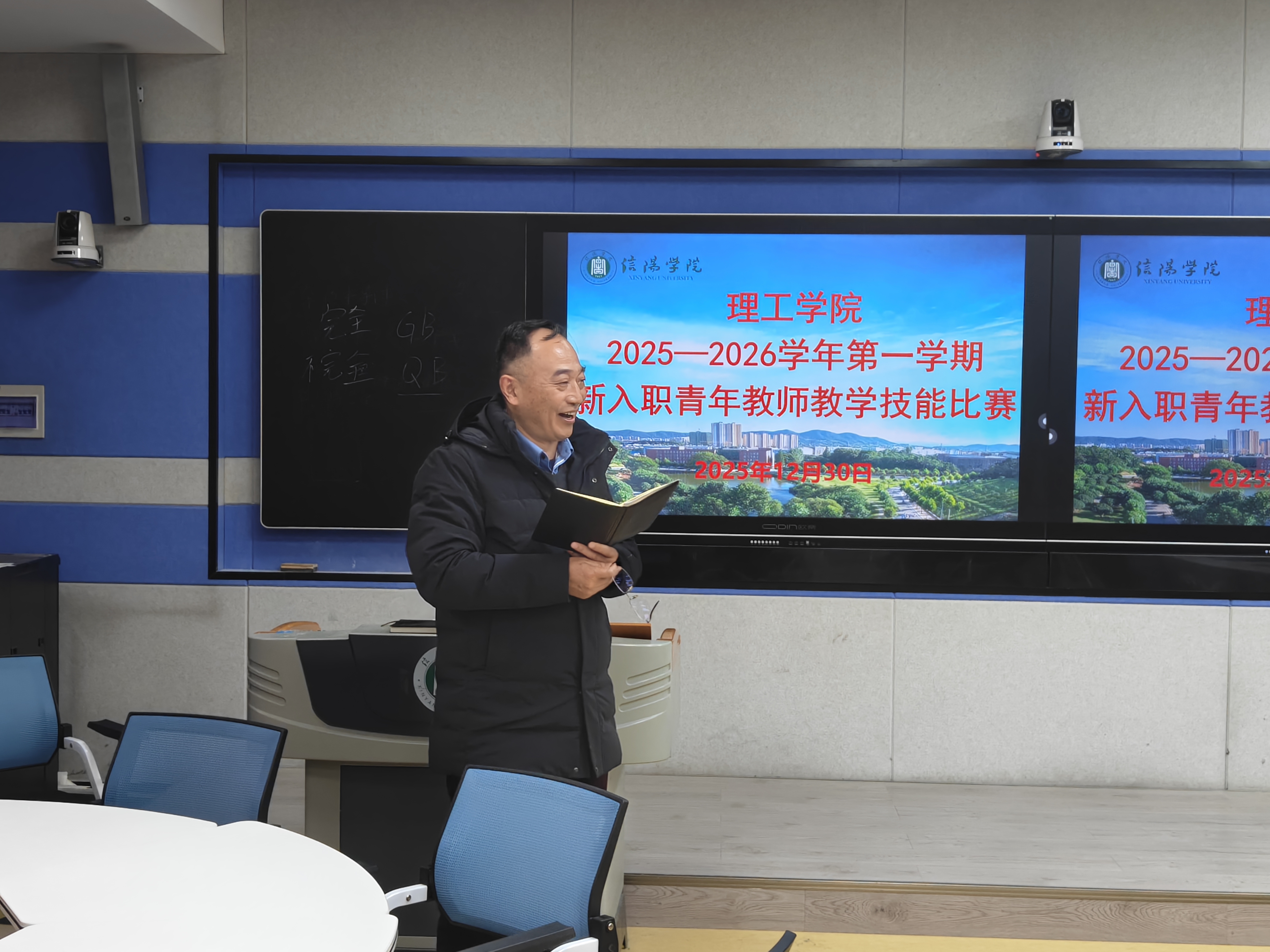12月30日下午,理工学院在人文楼南楼103和113教室举行2025-2026学年第一学期新入职教师教学技能比赛。比赛邀请了校督导专家张小玉教授,机械电子工程教研室曹国廷、王秀丽教授,汽车工程教研室杜来林教授、王思满老师,大学物理教研室贾小平副教授担任评委。比赛分两组进行,分别由张小玉和曹国廷主持。