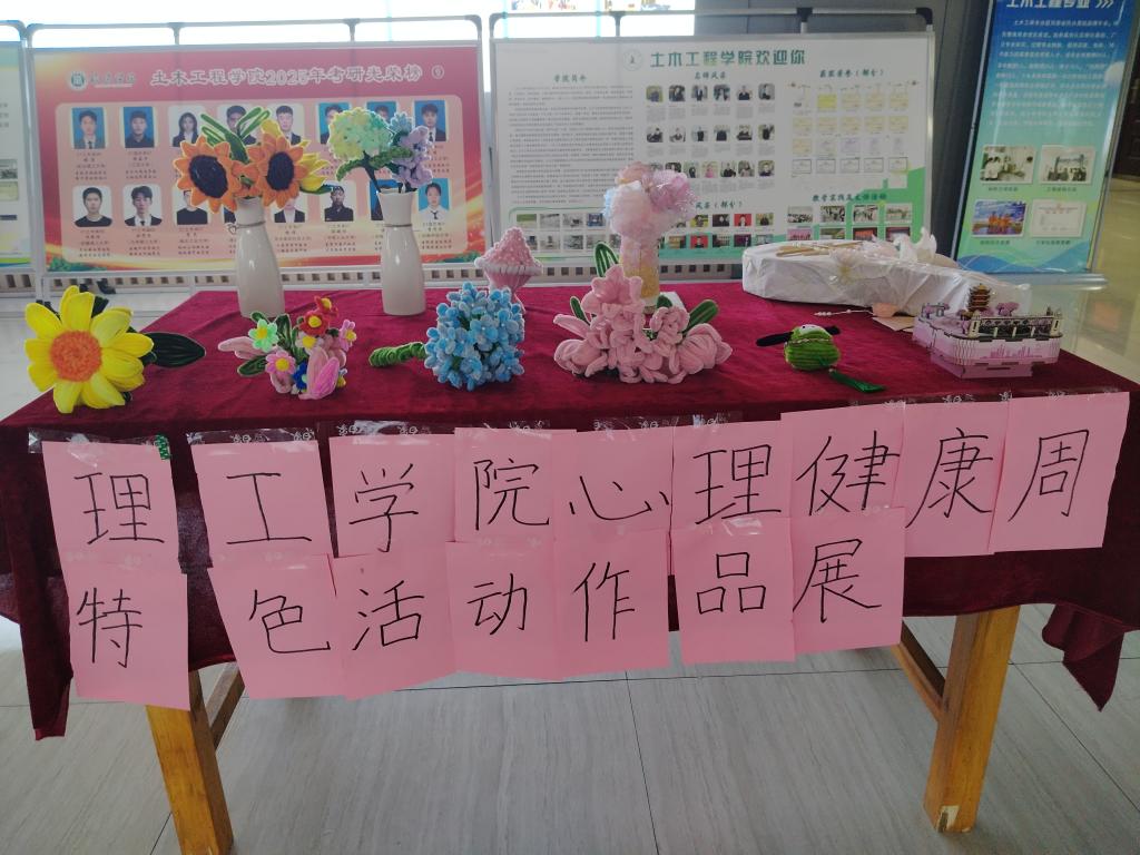 为关注学生心理健康,丰富校园文化生活,10月30日下午,理工学院在理工楼一楼大厅开展心理健康周特色活动——扭扭棒创意手工作品展,以充满童趣与创意的手工形式,为同学们搭建了一个释放压力、抒发情感、交流互动的心灵平台。