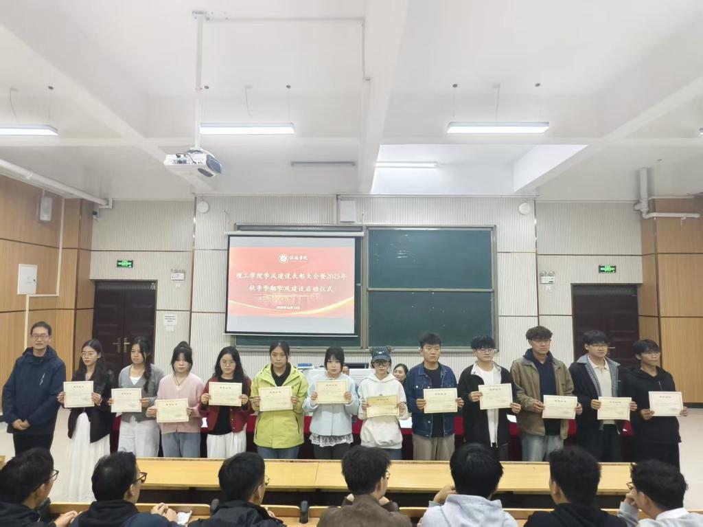 为持续深化学风建设成效,助力学生提升学习质量与效率,2025年10月13日晚,理工学院于实训中心104教室举办学风建设表彰大会暨2025年秋季学期学风建设启动仪式。院长肖生发、党总支书记赵佳、教学副院长李晓严、学工秘书杨晓杰、全体辅导员,以及2023至2025级学生干部、获奖代表齐聚现场。大会由赵佳主持,全体参会人员携手为学院学风建设开启新篇章。