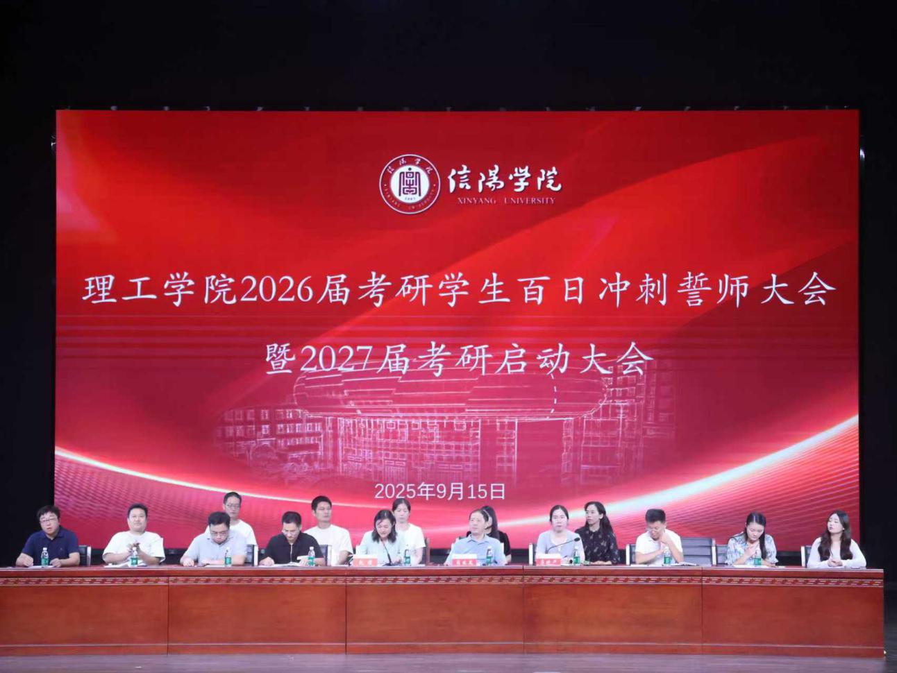 时维九月,金风拂面。9月15日晚,理工学院于TYC234CC太阳成集团音乐厅隆重举行2026届考研学生百日冲刺誓师大会暨2027届考研启动大会。理工学院院长肖生发、党总支书记赵佳、教学副院长李晓严、学工秘书杨晓杰,各专业考研指导老师、教研室主任、全体辅导员,2026届考研学子、2027届拟考研学子共同参会,见证这一励志时刻。此次会议由赵佳主持。