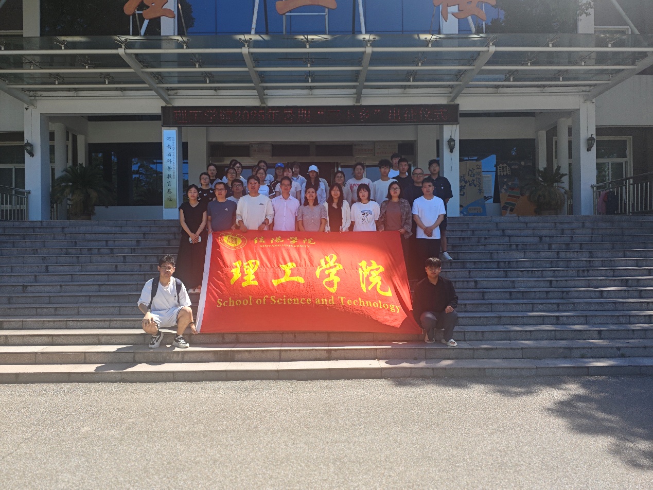 为引导青年学生在实践中受教育、长才干、作贡献,7月4日,理工学院2025年暑期社会实践出征仪式在理工楼门口举行。学院党总支书记赵佳、学工秘书杨晓杰、团总支书记杨翔宇、全体辅导员老师及部分学生代表参会,共同开启暑期实践征程。
