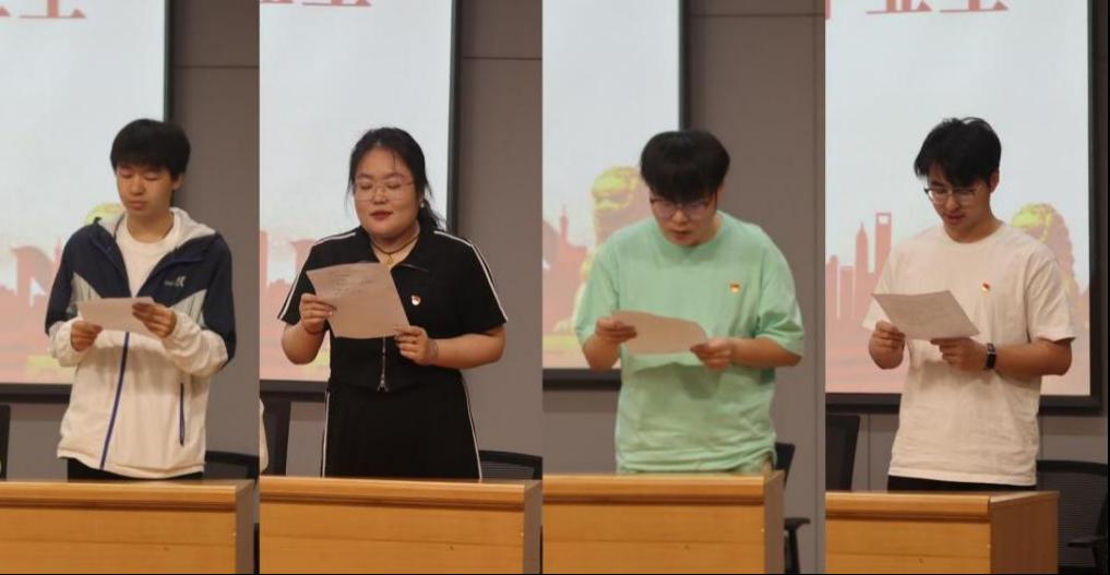 随后,毕业生党员代表李双瑶、李子圆、付大帅、邱一帆四位同学依次发言,表示将在今后的学习与工作中严格要求自己,以实际行动践行党员使命。