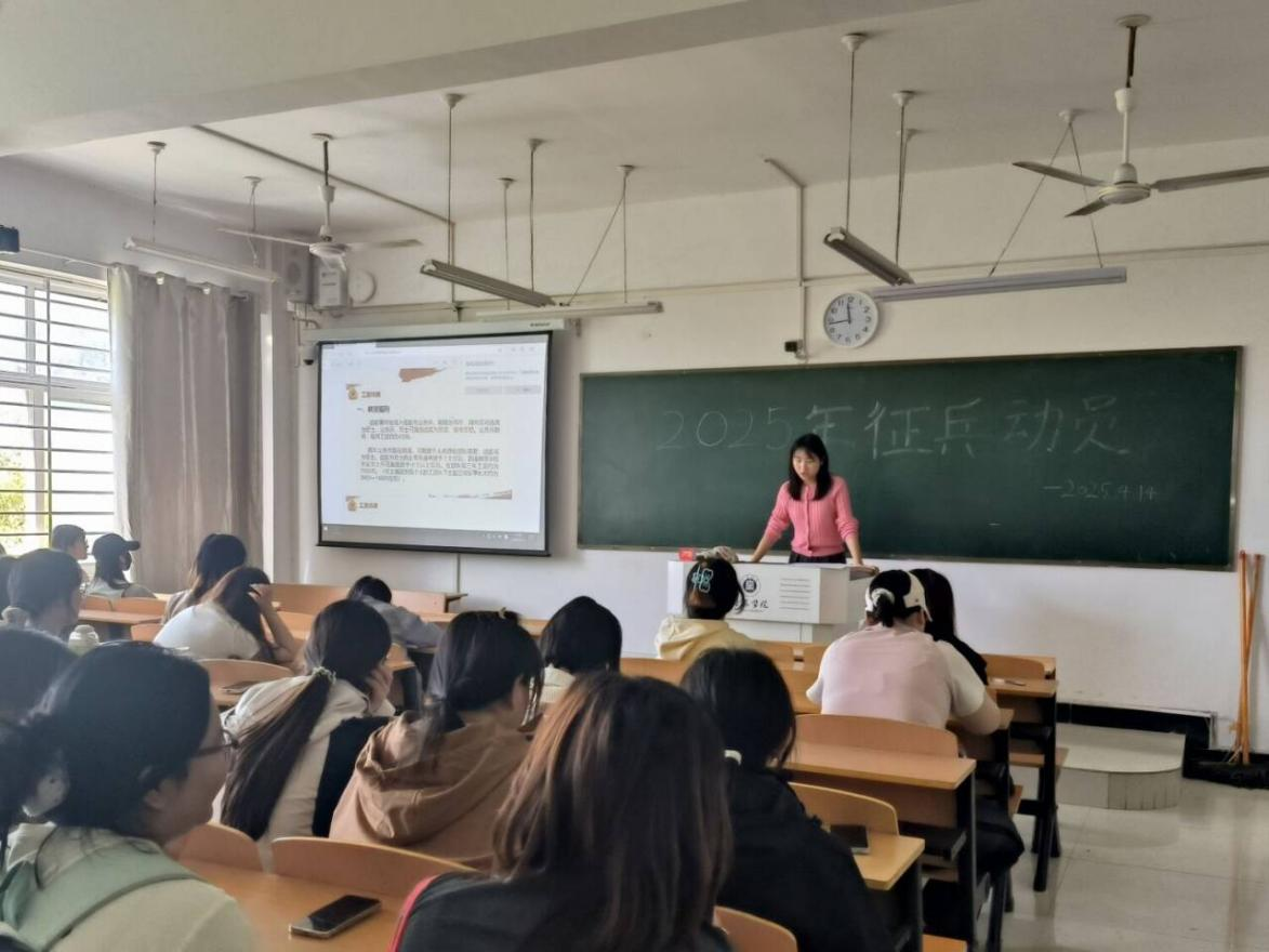 4月16日,理工学院在理工楼405教室召开2025年春季征兵动员会。李英治老师全面解读征兵工作,并就学费减免、复学、助学等学生关心的问题详细阐释。退役复学学生代表杜梦琦分享入伍初衷与收获。本次动员会为2021级应届毕业男生答疑解惑,助力他们投身军旅。