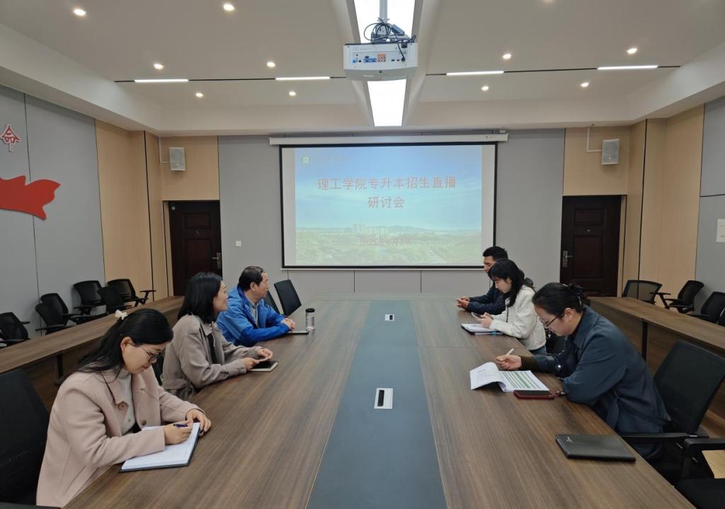 为进一步提升招生直播工作质量,优化招生宣传效果,4月2日下午,理工学院在理工楼201会议室召开了2025专升本招生直播研讨会。院长肖生发、党总支书记赵佳、负责招生的老师和辅导员参加会议。