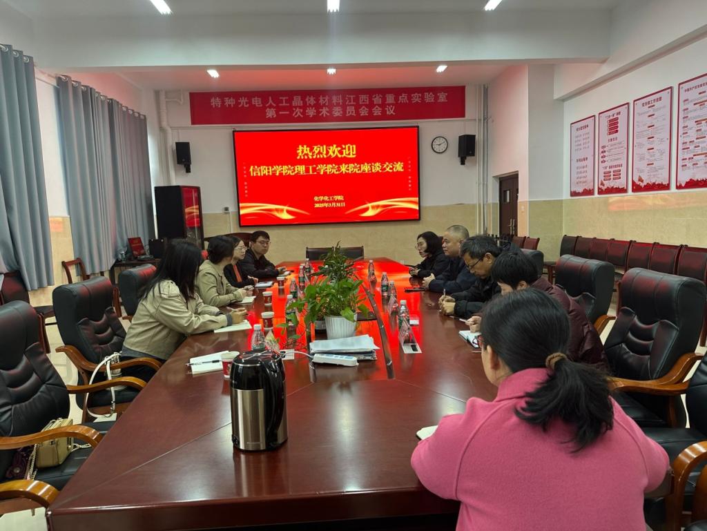 为进一步提升我院教育教学和学科建设水平,充分借鉴先进院校的发展理念和先进办学经验,近日,理工学院教学副院长李晓严带领我院实验教学中心主任杨潇剑、化学专业负责人刘仁植、教研室主任黄艳伟、骨干教师马艳梅一行,赴井冈山大学化学化工学院考察学习。井冈山大学化学化工学院院长陈文通、实验室主任匡仁云、骨干教师候林丽博士、教务科科长段艳萍和办公室主任王会妙等相关人员出席了座谈会。
