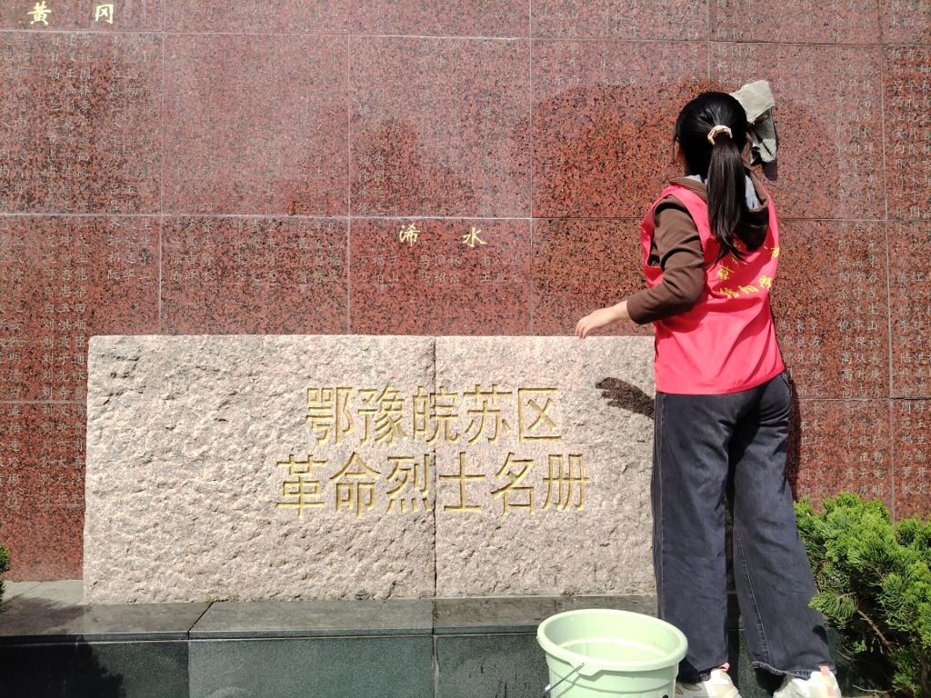 在工作人员的带领下,大别山精神学习传承社的师生代表们在革命烈士纪念碑前依次敬献鲜花并鞠躬默哀,全体同学庄严宣誓,以铿锵誓言表达继承遗志、不忘初心使命的决心。宣誓后,师生们前往英雄广场瞻仰纪念碑,开展卫生清扫和烈士纪念墙清洗活动。同学们挥汗如雨、认真细致的打扫每一处角落,清洗纪念墙上每一个烈士名字,用真情触摸历史,感悟革命先烈们舍生取义、悍不畏死的家国情怀。在展厅内,听完工作人员讲解大别山地区军民创造了28年红旗不倒的历史,在革命战争年代,200多万英雄儿女在这里留下战斗的足迹,近百万人献出宝贵的生命,几乎是“村村有烈士,户户有红军,山山埋忠骨,岭岭皆丰碑”的事迹,在场师生的身心再一次接受了深刻的洗礼,并纷纷表示一定会继续传承大别山精神,忠于祖国,勤学本领,励练意志,服务社会。