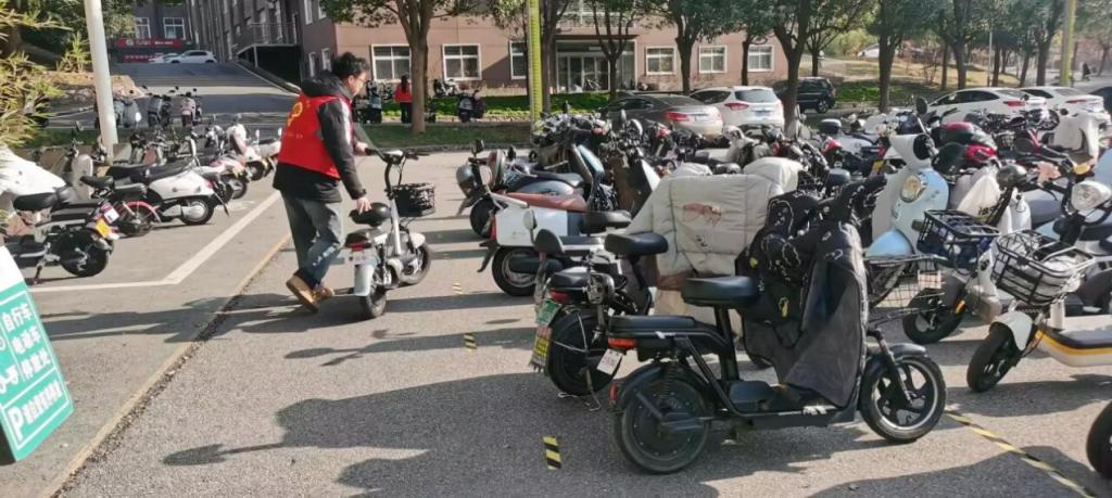 理工学院志愿者服务队严格依据学院的工作方案,将治理重点放在理工楼附近的电动车停放管理工作上。他们依照既定要求,引导学生规范停放电动车。此外,还积极开展电动车规范停放、集中有序充电以及安全骑行等方面的宣传教育活动,按照学院规定,引导学生有序、规范地停放车辆并安全充电。