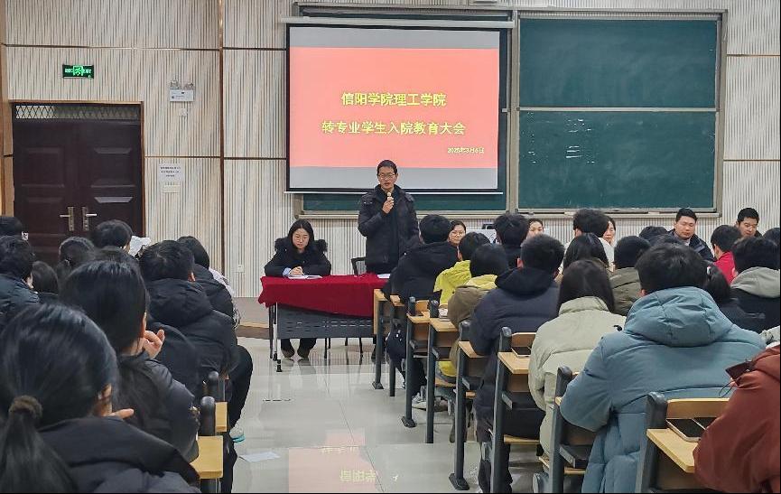 党总支书记赵佳从师资力量、教学设备、学科荣誉及学风建设等方面详细介绍了理工学院的发展概况,要求转专业学生尽快转变角色,融入新的集体,遵守学院、学校的规章制度,并鼓励学生珍惜学习机会,传承学院“爱我理工,共建同荣”的优良传统。