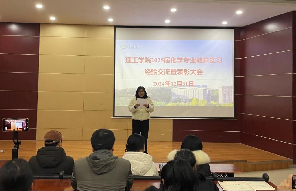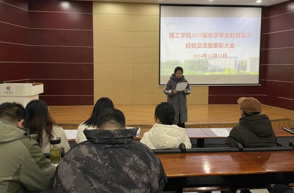 12月31日上午,理工学院化学专业2025届教育实习经验交流暨表彰大会在浉河校区图书馆102举行。理工学院院长肖生发、党总支书记赵佳、教学副院长李晓严、化学教研室主任黄艳伟、化学专业全体教育实习指导教师以及2021级全体同学参加了大会,大会由化学教研室张瑞老师主持。