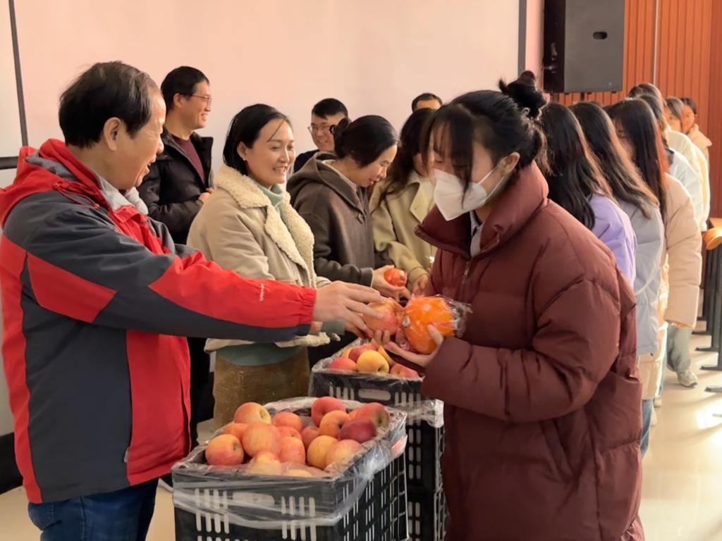 学院向考研同学发放了精心准备的“考研加油包”:考研复习秘笈,橙子、苹果等美好寓意的福包,寓意考研学子平安喜遂,称心如意,早日上岸。