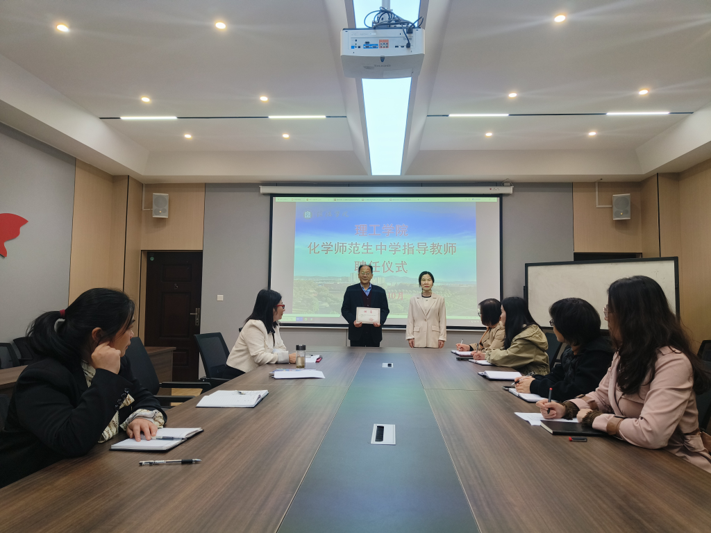 为进一步提高教育教学水平和人才培养质量,促进人才培养与就业市场的对接,进一步提升学院毕业生就业质量,10月20日,理工学院化学专业与中学用人单位代表在理工楼201会议室举行聘任仪式及座谈会。出席本次座谈会的有信阳市浉河区新时代学校的教师代表李家全、理工学院教学副院长李晓严、化学教研室主任黄艳伟、学工负责人杨晓杰和化学教研室部分教师代表,会议由黄艳伟主任主持。