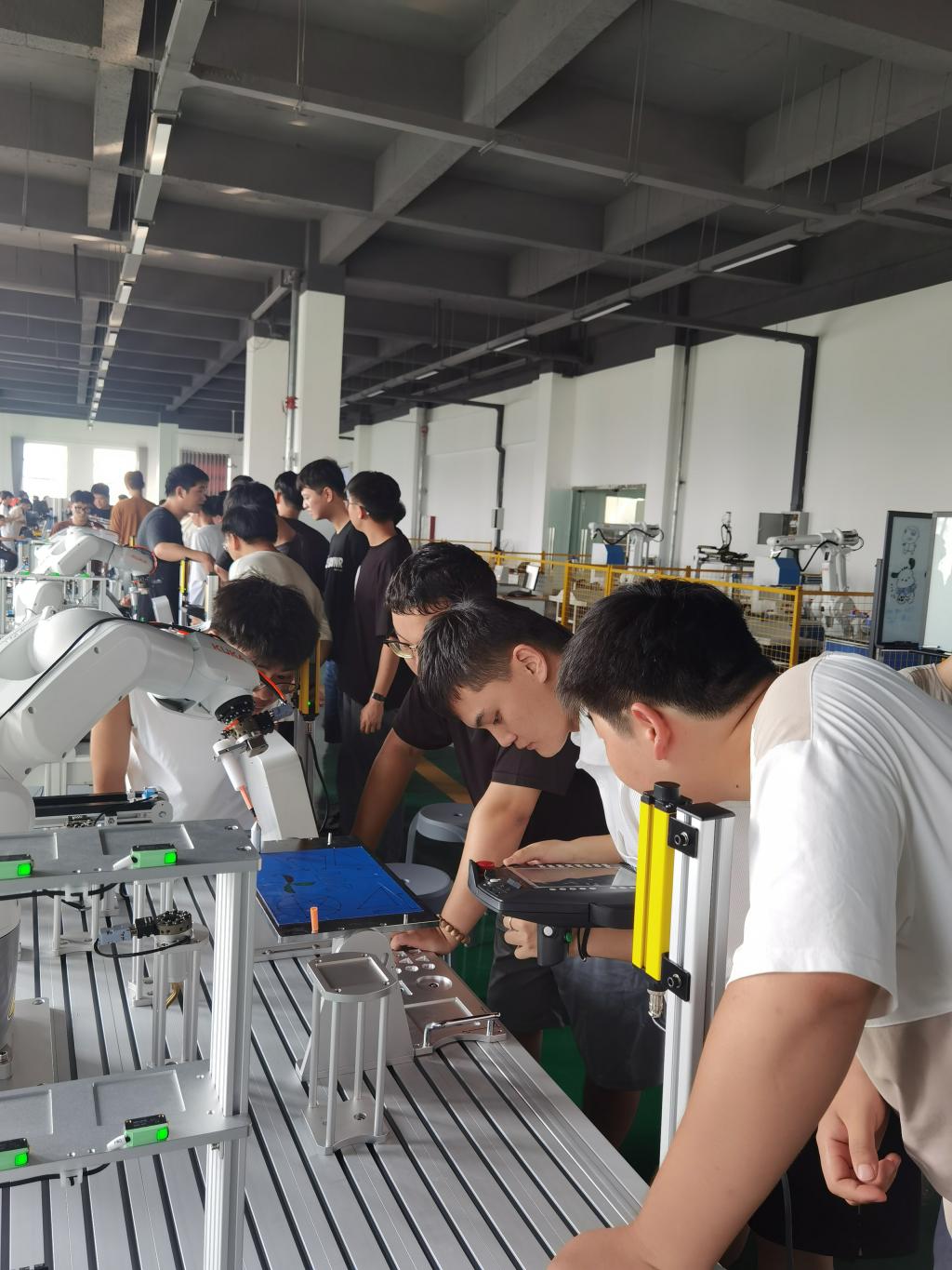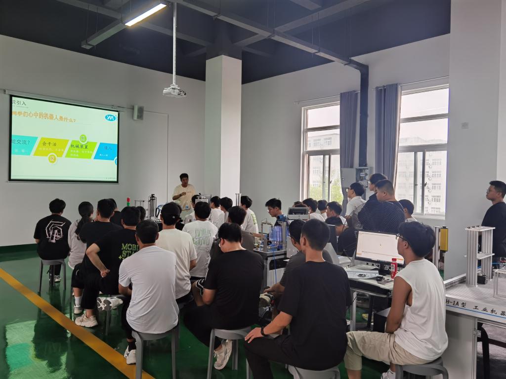 2024年秋季学期开学,杭州仪迈科技有限公司为赋能人才培育,率先选派第一批两名工程师入驻TYC234CC太阳成集团工业机器人实训中心开展为期四周的实践教学,授课对象为2025届机械电子工程专业本科毕业生。机械电子工程教研室的青年教师根据专业方向观摩企业导师授课,企业导师结合自身工作经验,围绕现有实训条件一丝不苟的向学生传授技能。同学们纷纷表示,企业导师的授课通俗易懂且很有耐心。2021级机械电子工程本科一班学委邱一帆表示,同学们跟随企业导师进行为期一个月的实操都获得了很大的收获,不但专业技能得到了很大提升,而且对深入企业实习满怀憧憬。