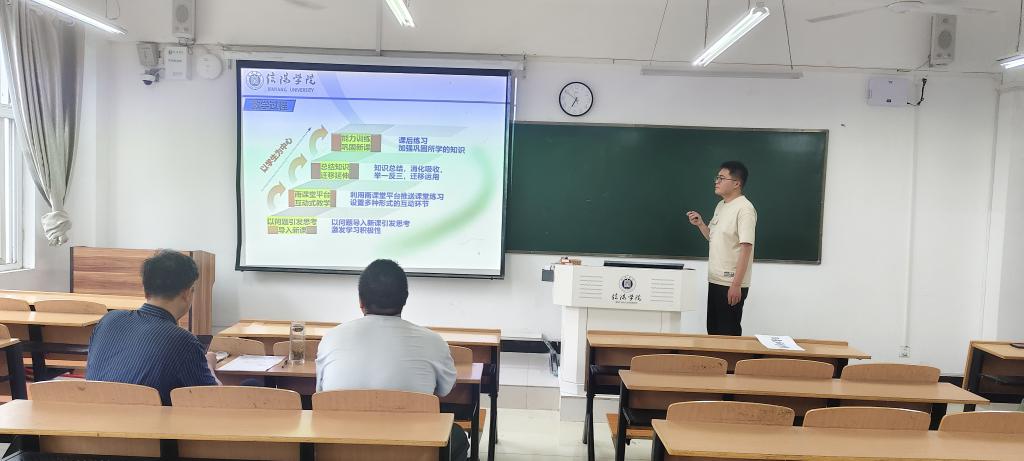 本次比赛分为说课和模拟授课两个环节。参赛教师们以学生为中心的精神为引领,在教学内容、教学方法、教姿教态等方面展现出了专业水准。在模拟授课环节,参赛教师们紧紧围绕教学目标,巧妙运用讯飞、雨课堂等现代教学手段,循序渐进,重难点突出,展现了娴熟的教学技巧。他们在授课中潜移默化地融入课程思政元素,始终贯彻着因材施教、立德树人的教学理念。经过一下午激烈的比拼,徐东亚和程双飞老师分别获得各自分组的最高分。