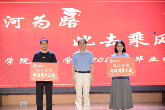 一曲歌舞罢,党总支副书记张红梅、教学副院长李晓严为考研明星个人颁奖,理工学院在考研道路上深造率始终位居全校第一,这份成就的取得离不开理工学院全体老师的支持及每一位考研学子的自身努力。