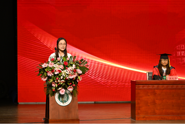 2023级生物科学本科1班张钺同学向全体毕业生朗读了《理工学院毕业寄语》。