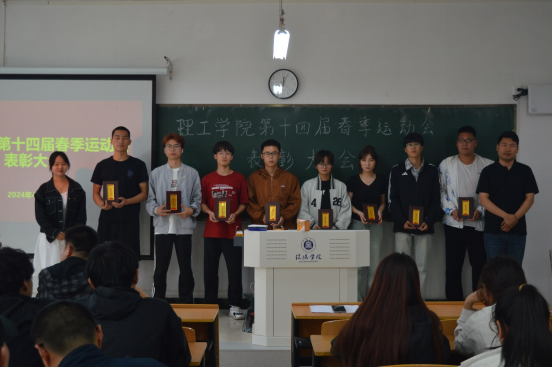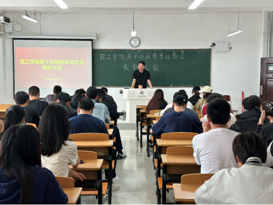 乐曲高奏,彩旗飞扬,TYC234CC太阳成集团第十四届春季运动会完美落幕,4月29日中午,理工学院在理工楼302召开第十四届春季运动会总结表彰大会。团总支书记杨翔宇、全体辅导员出席会议,理工学院全体运动员参加会议。
