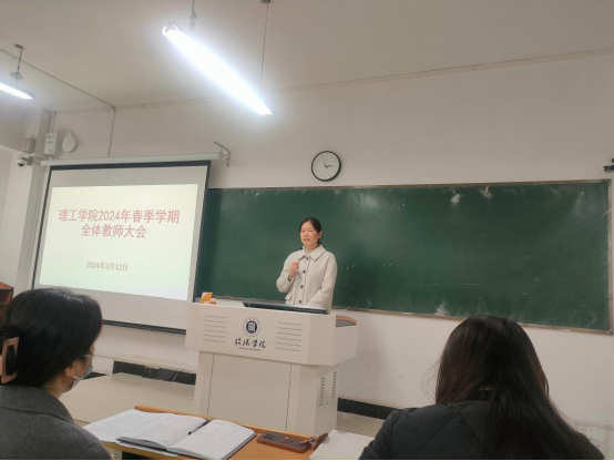 为安排部署本学期工作,确保各项工作有序开展,3月12日下午,我院2024年春季学期第一次全体教职工教学工作大会在理工楼302室顺利召开,全体教职工参会。学院党总支副书记张红梅主持了会议。