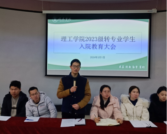 为进一步推动理工学院专业教育建设,加强转专业新生教育。日前,理工学院在理工楼116举行了2023级转专业入院教育大会。学院党总支副书记张红梅、教学副院长李晓严、学工秘书杨晓杰、团总支书记杨翔宇、全体辅导员出席会议。2023级全体转入新生参加会议。本次会议由学工秘书杨晓杰主持。