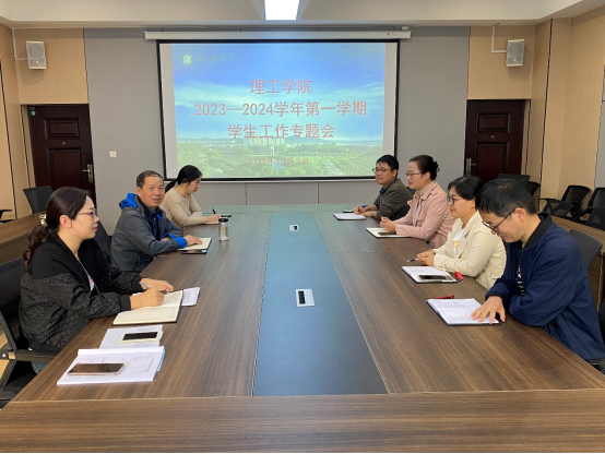 10月8日,理工学院在201会议室召开2023-2024学年第一学期学生工作专题会。学院院长肖生发、党总支副书记张红梅、教学副院长李晓严和各秘书参加会议。