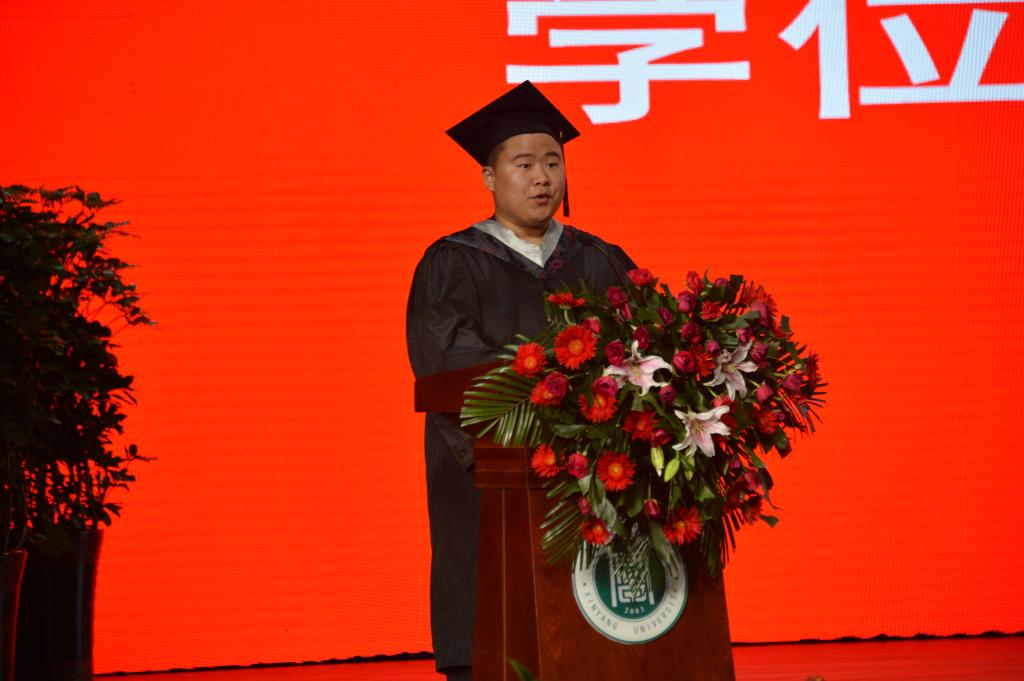 2023届毕业生代表韩南南发言,他回忆了大学四年的美好时光,表达了对母校以及对师长的感谢,继续发扬信院精神,梦想长青,担当常在,为母校增光。在校生代表郝成坤发言,她向取得学位的学长学姐们送上了祝福,祝福他们勇往直前去追求平凡中的卓越,祝福他们扬起胜利的风帆去创造平静中的升华,祝福他们用自身的魅力去实践青春无悔的诺言。低眉处无奈流年似水,扬帆行有志风华如火。