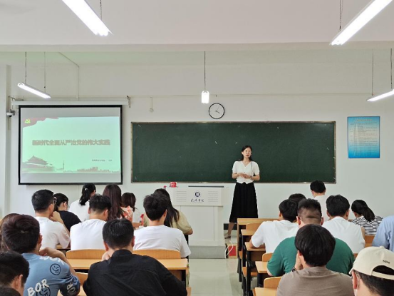 为进一步推进学习贯彻习近平新时代中国特色社会主义思想主题教育走深走实,6月1日下午,理工学院邀请马克思主义学院教师王妍在理工楼502教室开展了题为《新时代全面从严治党的伟大实践》的宣讲会,全体教师党员和毕业生党员到场聆听。宣讲会由杨晓杰主持。