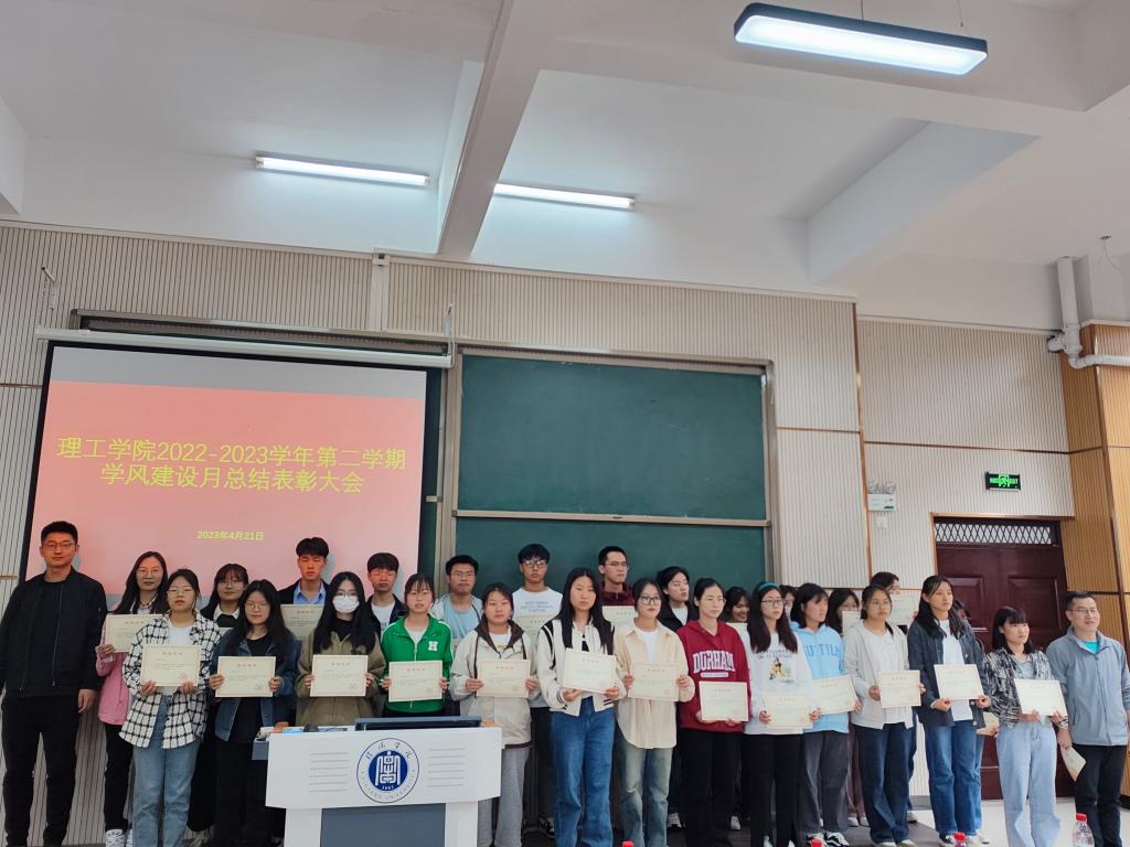 会上,杨晓杰总结了学风建设月开展的活动以及取得的效果,明确了下一阶段学风建设工作要求。辅导员胡文亚、郑亚茹分别宣读了《理工学院关于表彰2022-2023学年第二学期学风建设先进班集体、学风建设先进宿舍、优秀笔记的决定》《理工学院关于表彰2023年大学生创新创业优秀指导老师、优秀团队及先进个人的决定》。学风建设先进班集体代表焦毓琛、学风建设先进宿舍代表吕新慧以及优秀笔记代表司乐乐分别作了交流发言。参会领导和老师为获奖人员颁奖。