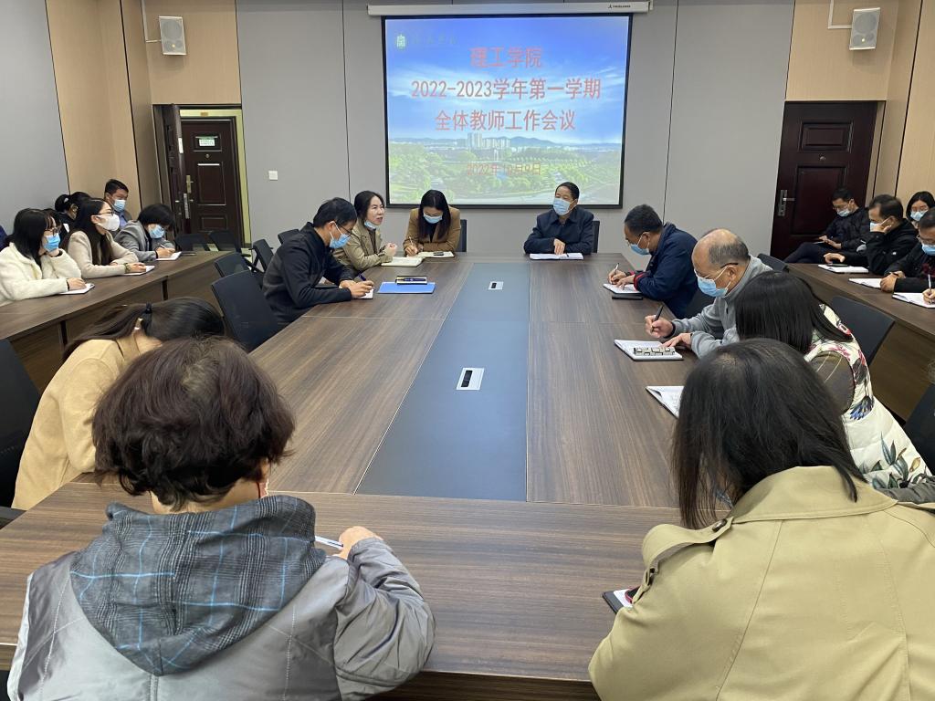 10月9日上午,理工学院在理工楼201会议室召开2022-2023学年第一学期全体教师工作会议,院长肖生发、党总支副书记张红梅、教学副院长李晓严以及全体教师参加本次会议,会议由张红梅主持。
