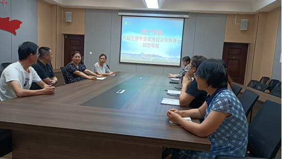 为加强校友联络,7月7日,理工学院2009级生物科学专业优秀校友何辉博士回访母校。理工学院书记张红梅、学工秘书杨晓杰、生物科学教研室主任高进勇,以及生物科学教研室的其他教师热情接待了何辉校友,并在理工楼201进行亲切座谈。