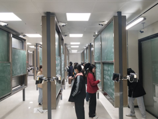 本次比赛分为三组:钢笔字、粉笔字和毛笔字组,比赛现场气氛紧张,同学们精神饱满。钢笔字组的参赛选手,手执钢笔,全力投入,精心书写;粉笔字赛场上大家也都格外认真,下笔动作都经过认真思考,努力追求书写的工整清秀;书写毛笔字时,有的同学洋洋洒洒,即席挥毫,有的同学则不急不躁,努力展示自己最好的水平。比赛过程中,评委老师走动观察学生的书写过程,最后工作人员将书法作品收齐交与老师进行现场评分。经过评比,兰宛平、赵露迪同学荣获钢笔字组一等奖;李慧君、赵露迪同学荣获粉笔字组一等奖;王怡菲同学荣获毛笔字组一等奖。