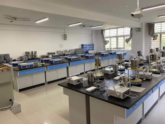 新的物大学物理实验中心包括六个实验室分别是:演示实验室、力学实验室、热学实验室、光学实验室、电磁学实验室(一)、电磁学实验室(二)。实验室除了能为理工科专业的《大学物理实验》课程开出15个实验项目之外,还能有效拓展进而完成多项和大学物理课程相关的其他实验项目。大学物理实验室改造升级完成,也标志着理工学院实验室建设工作向前迈出了一大步。