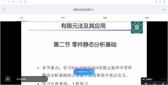朱老师和陈老师分别在有限元及其应用和MATLAB数学建模与仿真课程中,利用长江雨课堂对其课程和相应的软件进行线上演练。