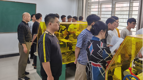 实训老师徐先懂博士结合自身多年的教学和项目经历,特别指出机械制造加工实训的第一要义是保证安全,同学们在动手操作前想明白前因后果,特别注意不能试图用手触摸旋转部件;同学们需按照实训手册,每组按次序进行操作,完成本次数控技术车削和铣削的学习任务。