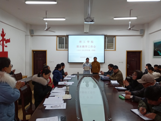 12月29日下午,理工学院在理工楼201会议室召开2020-2021学年第一学期期末教学工作会。理工学院院长肖生发、党总支副书记张红梅、教学副院长李晓严以及全体教师参加了会议。张红梅主持了会议。