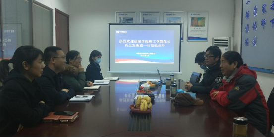 1月13日上午,理工学院院长肖生发教授带领学工秘书杨晓杰,辅导员徐国文和郑亚茹,来到了中原银行信阳中山路支行,看望了校友李卓。李卓于2012年毕业于我院的电子信息工程专业,现任中原银行信阳中山路支行行长。