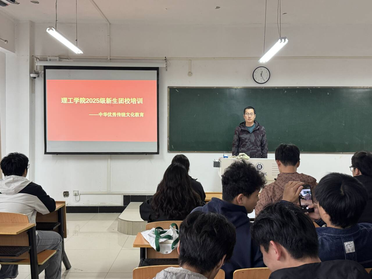 为加强中华优秀传统文化教育,营造优良文化环境,11月10日,理工学院于理工楼502教室开展2025级新生团校培训活动。本次活动由辅导员甘玉锋老师主讲,2025级团员代表参加了本次教育活动。
