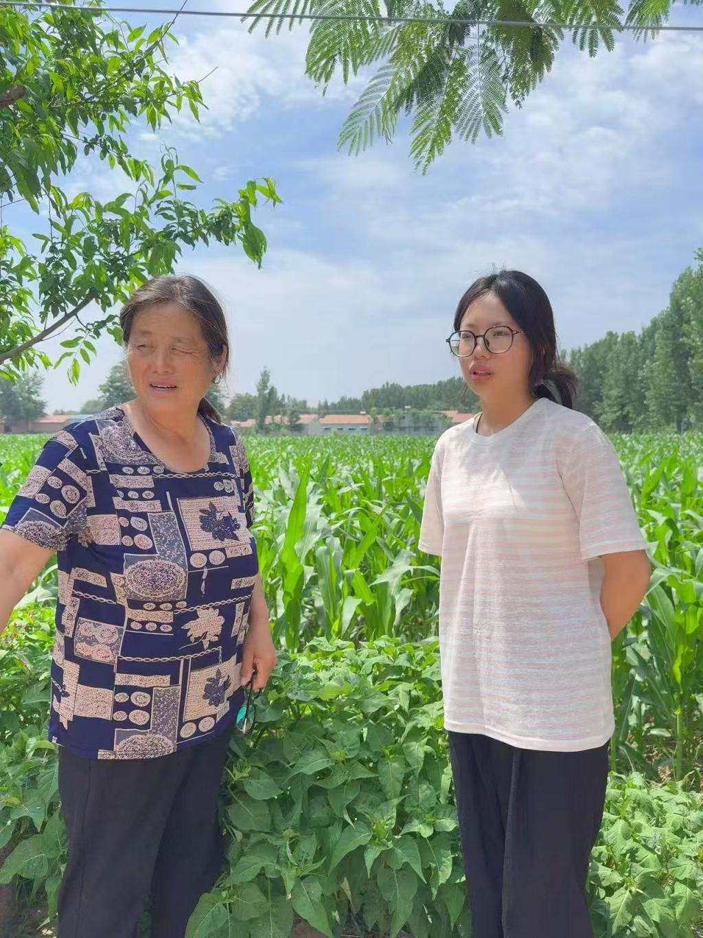 7月15日至20日,团队成员段晨曦来到濮阳市范县张庄镇的田地里进行实地考察。她仔细观察农作物的生长情况,向村民了解当地种植历史并结合专业知识分析土壤、气候等因素对农业生产的影响,为绿色农业发展提供科学依据。