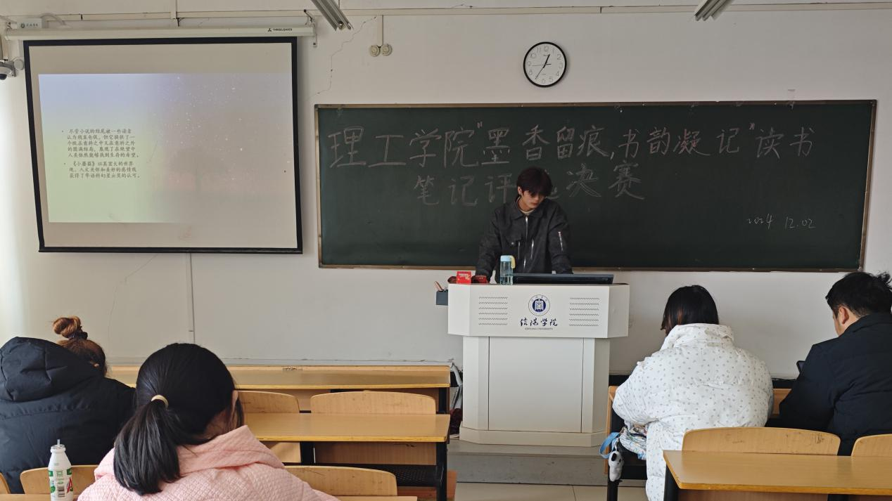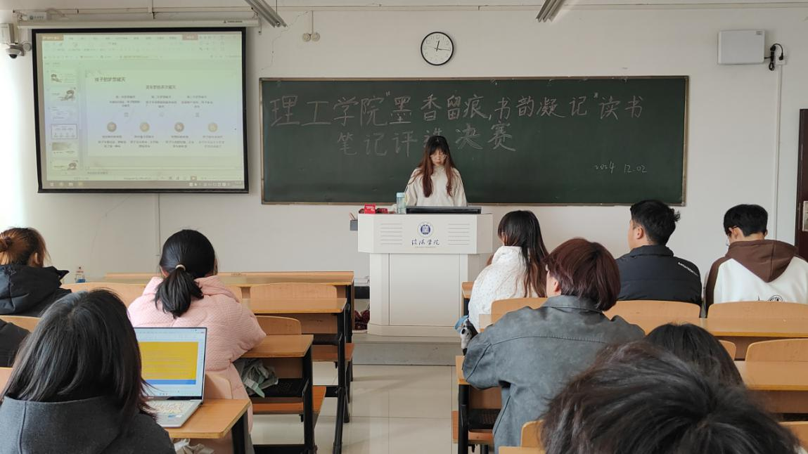 古人有云“观书有会意处,题其衣裳,以记其事”,为深入推进优良学风建设,进一步激发学生读书的热情,打造“书香理工”。理工学院开展“墨香留痕,书韵凝记”读书笔记评选活动。本次活动分为初赛和决赛。经过层层筛选,共有15名优秀选手脱颖而出。复赛于12月2日中午在理工楼504、505教室举行。