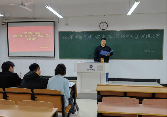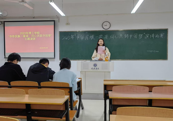 为深入学习习近平总书记关于加强和改进民族工作的重要思想,贯彻落实中央、省委民族工作会议精神,促进全校师生进一步“铸牢中华民族共同体意识”。理工学院在理工楼506教室进行“中华民族一家亲,同心共筑中国梦”主题演讲比赛,参赛同学在507等候比赛。理工学院团总支书记廉伟鹏、学生会主席团成员徐雨桐、文艺部部长莫翔参与活动,全院各年级共24名学生参加了本次比赛。