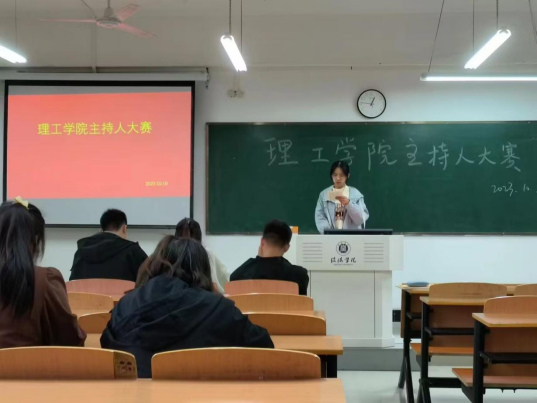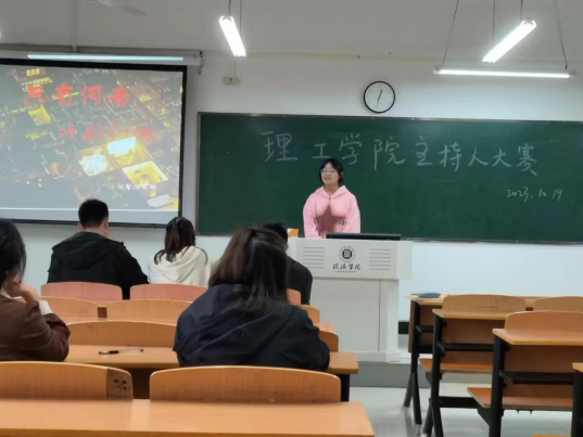 为提高理工学院全体同学综合素质能力,展现出勇于担当、积极作为的良好品质,以及在追求梦想的道路上永不停歇的精神。10月16日中午,理工学院在理工楼504、505教室举办了主持人大赛初赛。本次大赛由学生会主席团成员孙怡琳、学习部部长张羿杰、文艺部部长莫翔、陈恒、郝婧婧、樊静宇、朱玫洁担任评委。本次大赛共有22位参赛选手。