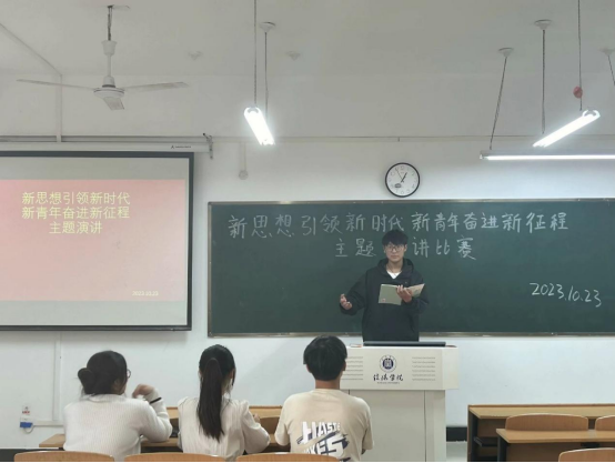 新时代呼唤新思想,新思想引领新青年,新青年奋进新征程。张建阁慷慨激昂地陈词道,我国发展正处于新的历史发展阶段,更要把握时代机遇,以昂扬的姿态大步向前走去。温佳振掷地有声的讲道,新时代的中国青年要以实现中华民族伟大复兴为己任,增强做中国人的志气、骨气和底气,不负时代,不负韶华,不负党和人民的殷切期望!我们作为新青年,应成为国家的脊梁、时代的先锋。以实际行动践行新时代中国特色社会思想,以奋斗在新的征程中取得更加辉煌的成就。