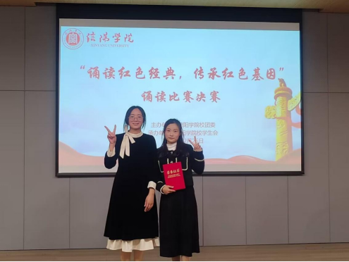诵读结束后,各评委老师现场打分并进行了点评,从诵读内容的严谨性和逻辑性、语音语调等方面,逐一指出了每位同学的优缺点。精彩绝伦的比赛在老师和选手的合照中落下帷幕,其中理工学院郭亚梦、张钺两名选手荣获一等奖,温家振、魏夕雅两名选手分别获得二等奖。