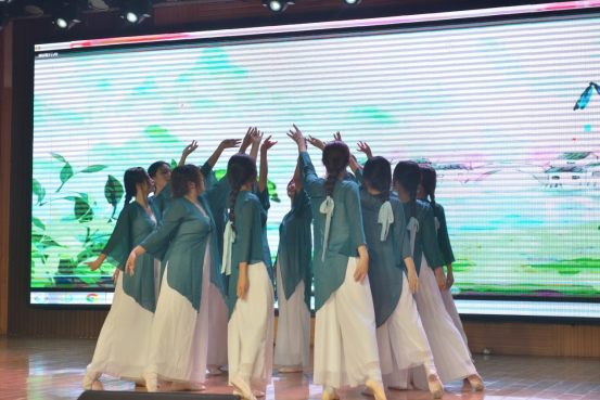 随着美妙的音乐缓缓响起,一段开场舞《烟雨行舟》拉开活动的序幕。主持人讲解女生节的由来以及历史发展,并为在场的女生送上美好祝福。