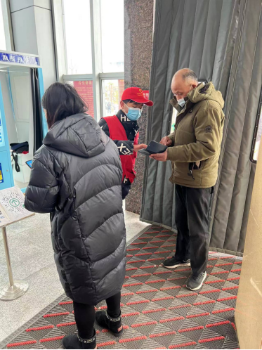 利若水同学积极响应学院动员,参加疫情防控,在县政府便民服务中心为来往人员把关,进行人员出入体温检测,健康码查验。