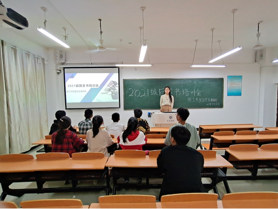 首先,团总支组织部王昭力同学就幻灯片制作、团日活动记录表记录要求、团日活动照片拍摄等方面进行了详细的培训。其次,团总支组织部王昭力同学对九月份团日活动进行总结,指出工作中存在的不足,并提出改进方案,同时对九月份团日活动完成较好的团支部进行表扬。最后,团总支副书记马子栋向2021级团支书分享了自己的团日活动经验和工作方面的心得体会,同时希望2021级团支书能够顺利开展好新学期工作。