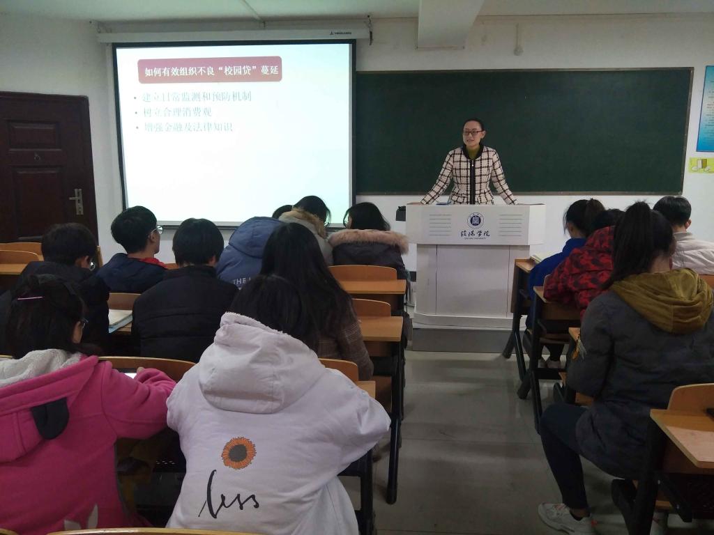 会议上张帆老师就“资助政策解读和诚信金融安全知识”为主题为大家讲解了此次培训会内容。第一,老师为大家讲解什么是资助政策,包含了奖助学金、助学贷款和勤工助学等几方面。第二,老师为大家讲解有关诚信的知识,以“诚信彰显生命的力量”,“违约失信,错事良机”两个事例为大家讲解了诚信的重要性。第三,老师讲解了网络金融风险及防范的知识,帮助大家更好的了解了不良“校园贷”的危险。第四,老师讲解了如何做学生综合测评,包括了德育、学业成绩、日常活动及表现和评定流程。第五,老师讲了有关奖学金发放方面的注意事项,其总括为要努力做一个德智体美劳全面发展的学生干部。