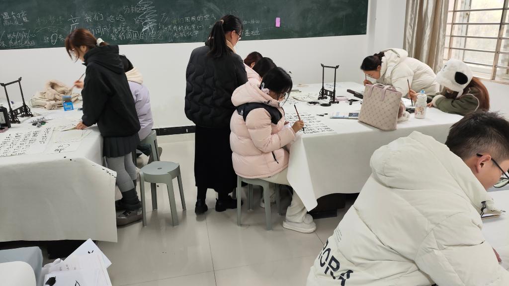 活动期间,教师通过理论讲解、现场示范等方式,向同学们传授了粉笔字、钢笔字、毛笔字书写的要领与技巧。从握笔姿势到笔画顺序,从间架结构到章法布局,深入浅出的讲解让同学们对“三笔字”有了更系统的认识。练习时同学们一笔一划间尽显认真与执着,不仅提高了书写技能,更在无形中培养了耐心、专注力和审美情趣;同学间相互交流、借鉴与自我探索,在相互切磋中激发了对“三笔字”的浓厚兴趣。