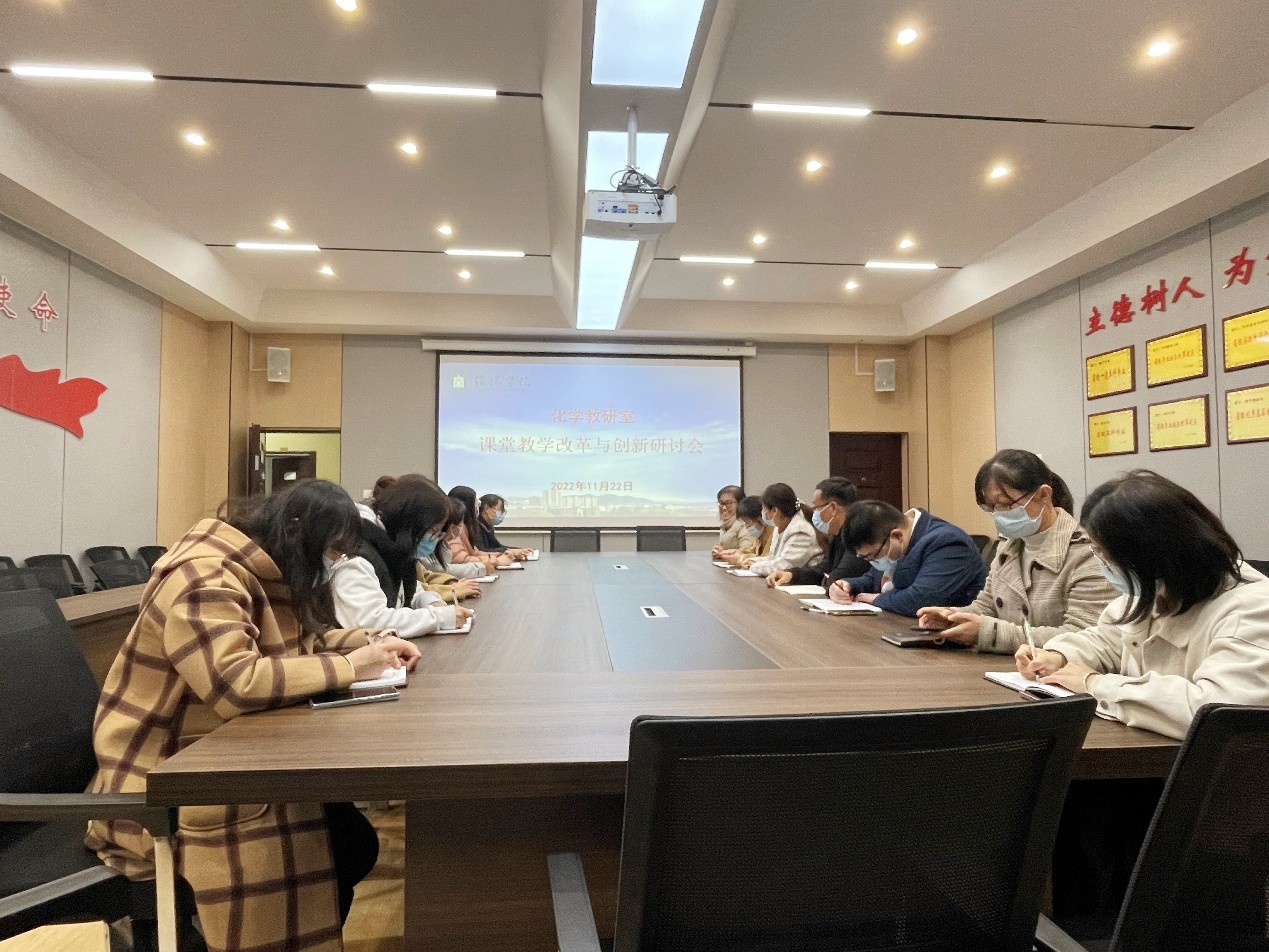 11月22日下午,化学教研室在理工楼201会议室召开课堂教学改革与方法创新研讨会,教研室主任张秋平博士主持会议,姚素梅教授及化学教研室全体教师参加本次研讨会。