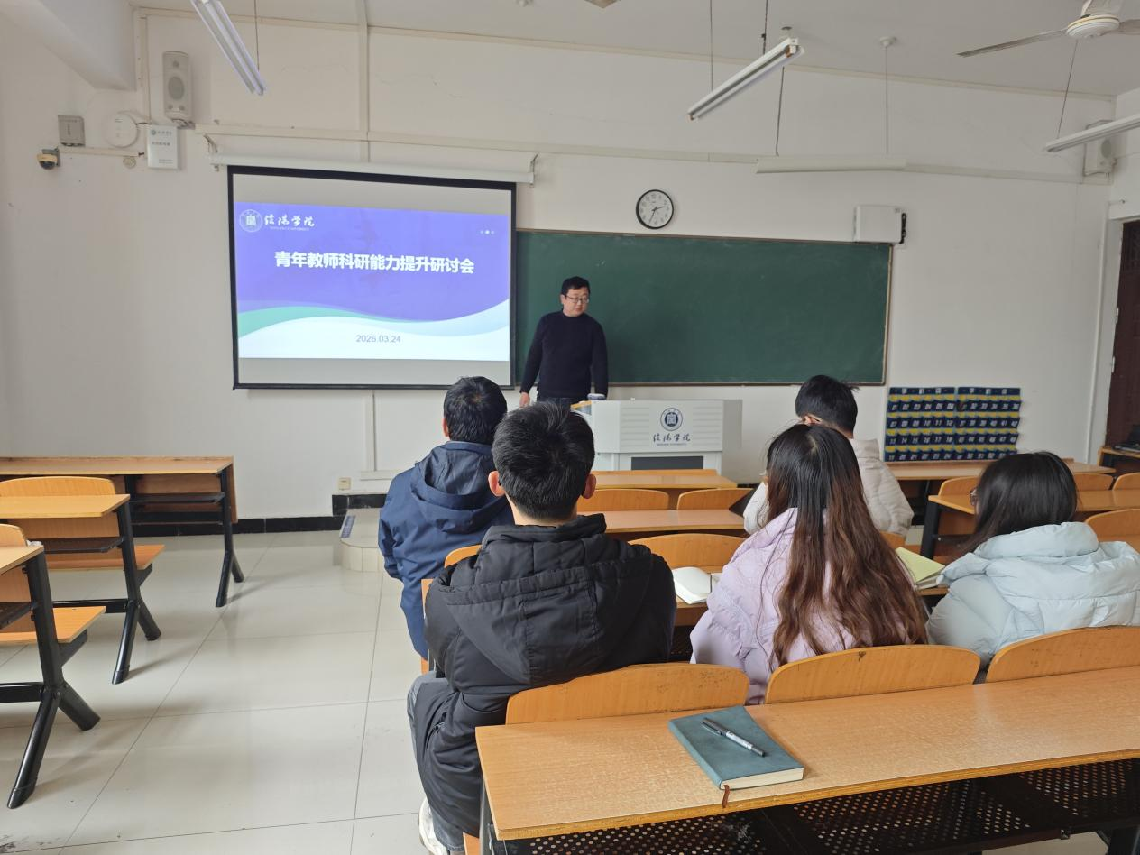 贾富海老师总结时强调,青年教师要树立正确的科研观,坚持问题导向,立足学院发展实际,积极整合校内外资源,注重成果积累与团队协作,把科研能力提升与服务学科建设、人才培养紧密结合。
