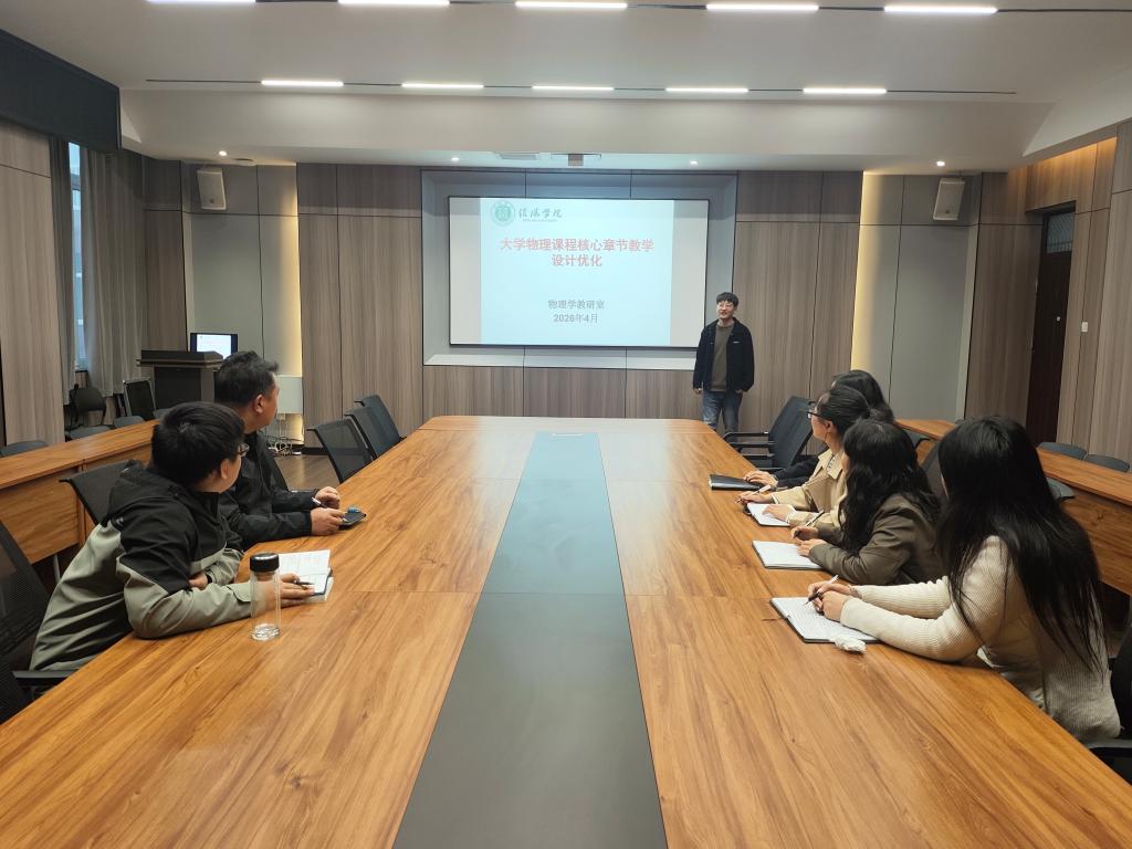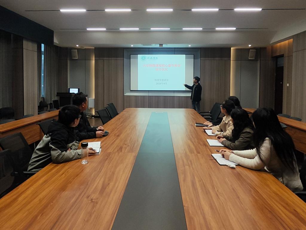 4月21日,太阳成城集团tyc234cc物理学教研室于社科楼109会议室召开专题教研活动,深入探讨“大学物理核心章节教学设计优化”方案。本次教研活动由物理学教研室主任高延利主持,吴一帆老师作专题汇报。